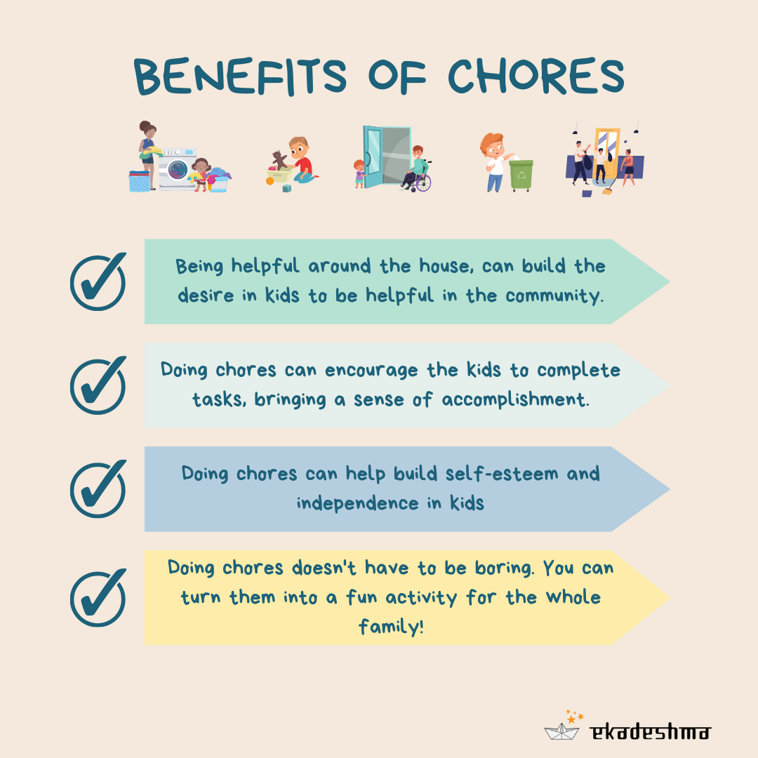 Doing chores can encourage the kids to complete tasks, bringing a sense of accomplishment.